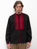 Loose fit shirt. Stand collar, front button fastening to the very bottom.