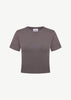 Own the wink. This charcoal cropped tee is cut from soft jersey and finished with tonal “Guilty Pleasure” embroidery—an easy layer with off-duty attitude.