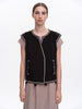 The piece is lined with thin cotton. Depending on the season, the vest can be worn on its own or as part of a layered look.