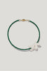 Necklace on a fixed base with symbolic handmade porcelain bird and malachite beads