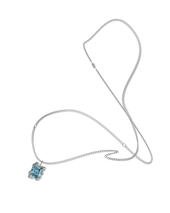 This piece blends age-old forms with the brand’s signature natural textures, offering a modern take on classic design. The clear, airy hue of the sky topaz brings a sense of lightness and clarity, making the pendant a distinctive symbol of elegance and creative craftsmanship.