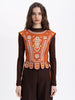 Terracotta linen embroidered vest.